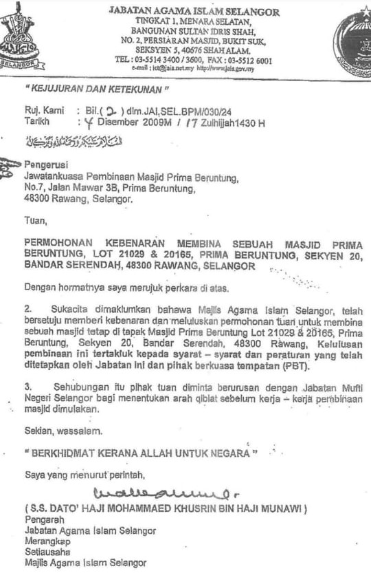 Kebenaran Pembinaan Masjid oleh Jabatan Agama Islam Selangor