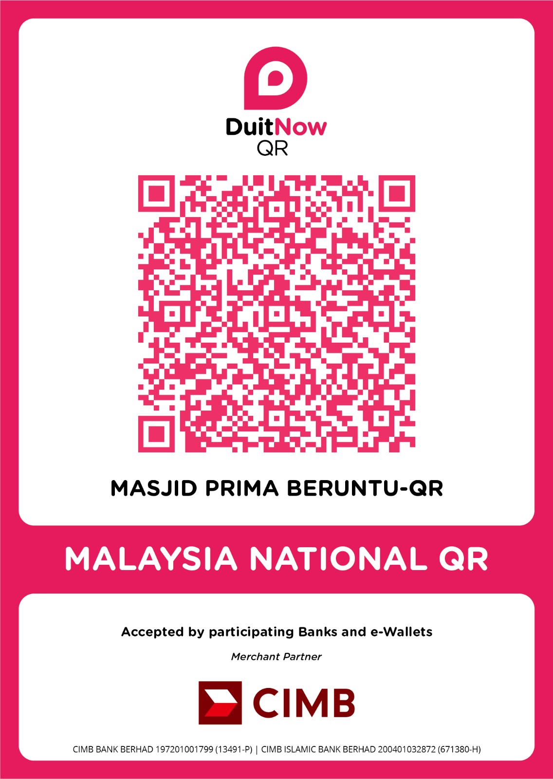 setiap sumbangan anda mendekatkan kita kepada pembinaan Masjid Prima Beruntung.